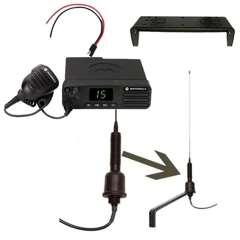 We're supplying the Motorola DM4400e digital mobile radio in a complete kit suitable for fitting in a range of agricultural vehicles. The kit includes a standard compact microphone, earth-independent spring-loaded antenna with wing mirror bracket, installation brackets and power lead for the radio, as well as free programming if required.