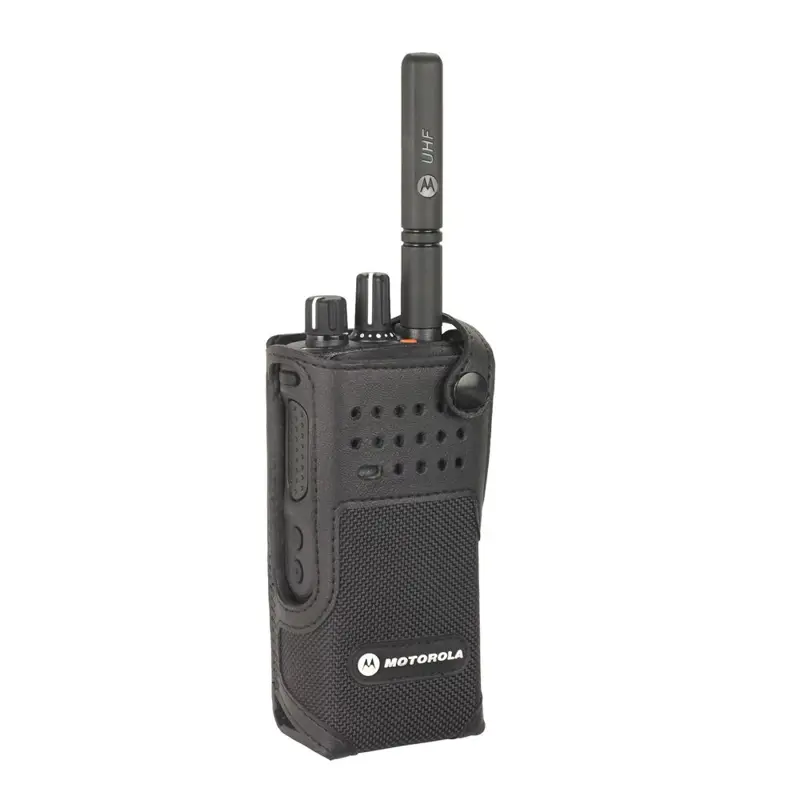 The Motorola PMLN5845A is a durable nylon carry case designed for non-display radios, specifically compatible with the DP4000/e Series. It features a 3" fixed belt loop for secure attachment and is constructed from sturdy nylon material. This case ensures reliable protection and accessibility for non-display radios in professional settings.