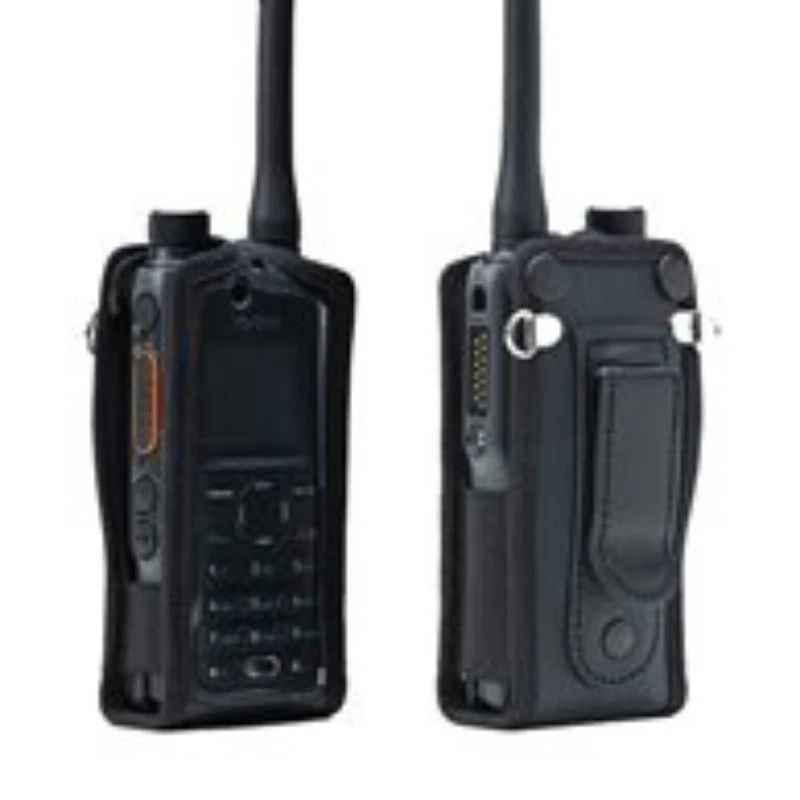 This soft leather carry case is tailored for the Hytera HP685, offering both protection and style. It features D-rings for strap attachment and a spring belt clip for convenient carrying. The case includes a PVC cover to safeguard the keypad and screen, while durable nickel fasteners ensure long-lasting reliability, making it an ideal accessory for your Hytera radio.
