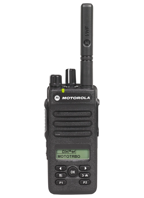 The Motorola DP2600e handheld two-way radio is a cost-effective digital two way radio featuring a 2-line LCD display operating in Day or Night mode, and an easy-to-use half keypad for quick menu navigation. The 2-Line LCD provides greater user functionality, allowing for individual private calls to be made and caller ID so you always know who is transmitting.