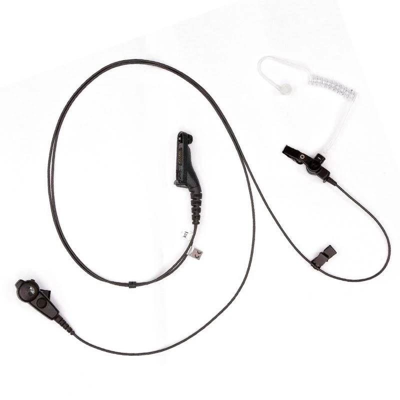 Two-wire features one wire for receiving transmissions and one wire with a combined microphone and push-to-talk.