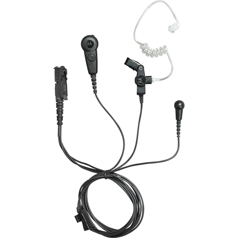 The Motorola PMLN6754A is a 3-wire surveillance earpiece with built-in microphone and push-to-talk (PTT), designed for discreet and reliable communication in demanding environments.