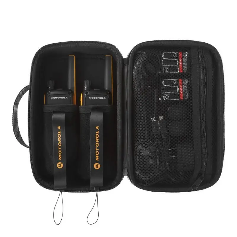 The new Motorola T82 Extreme handheld radios are the next licence-free generation in the Motorola Talkabout PMR446 catalogue. This model has a slim and robust design, and features an impressive hidden display, which displays active information when you need it. This radio offers a weatherproof IPX4 rating and includes an easy pairing button to quickly connect you to other Motorola T82 radios without the need to scroll through channels.