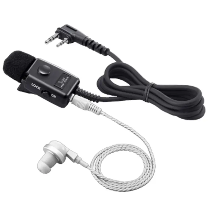The HM-153LA earphone microphone, featuring a 2-pin right-angle screw-down connector, is ideal for users who require a discreet earpiece, work in noisy environments, or need private communications. Compatible with the IC-F29R, IC-F29SR2, IC-F29DR, IC-F29DR2, IC-F1000 Series and IC-F1100 Series.