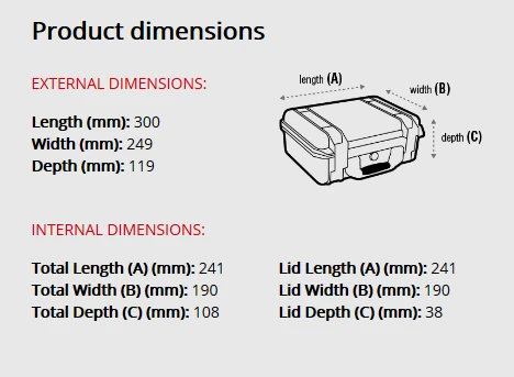 - External Length x Width x Depth (mm) - 300 x 249 x 119