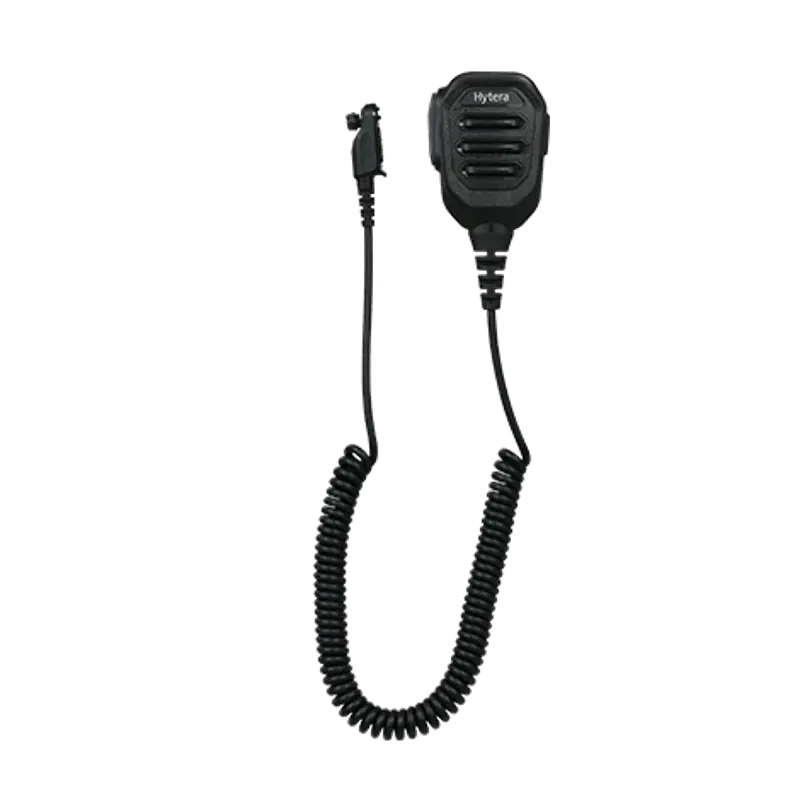 The Hytera SM50N1-P is a compact, IP54-rated remote speaker microphone with a 3.5mm audio jack and volume control, built for professional users needing clear audio and durable design.