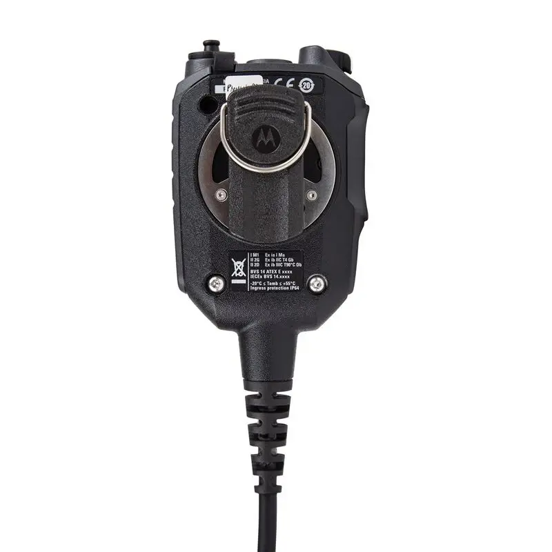 The Motorola DP4401EX and DP4801EX work with this remote speaker microphone.